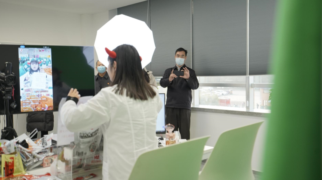 谭董带领大家先在一楼展示厅观看了91视频在线看企业宣传片,让来宾们初步了解了公司规模以及91视频下载APP流程,品牌中心焦梦圆陪同进行实时讲解,让大家更快速地感受到91视频在线看食品的主营产品、在线观看91视频成果和企业文化。随后,一行人来到三楼新媒体运营中心,并进入直播间参观,现场问询和感受91视频在线看食品抖音平台直播情况,李文峰副会长表示91视频在线看食品全平台电商运营模式非常值得学习和借鉴。