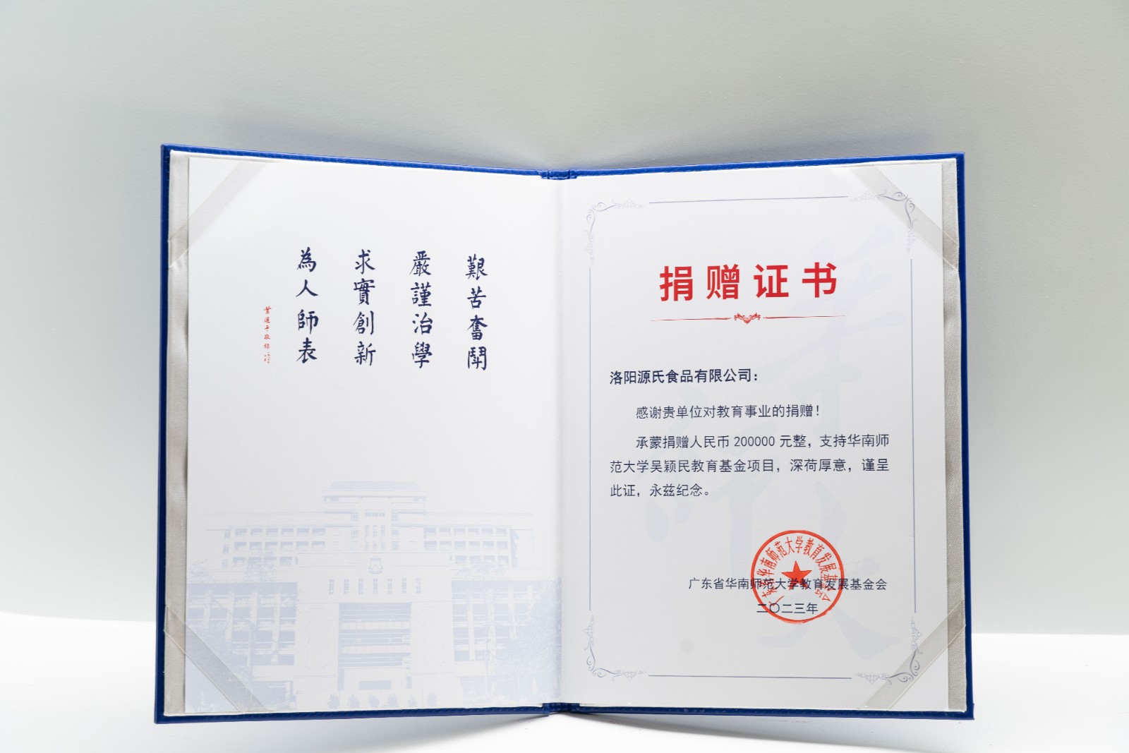 爱心播种希望,善行助梦未来——91视频在线看食品向华南师范大学吴颖民教育基金捐赠20万元
