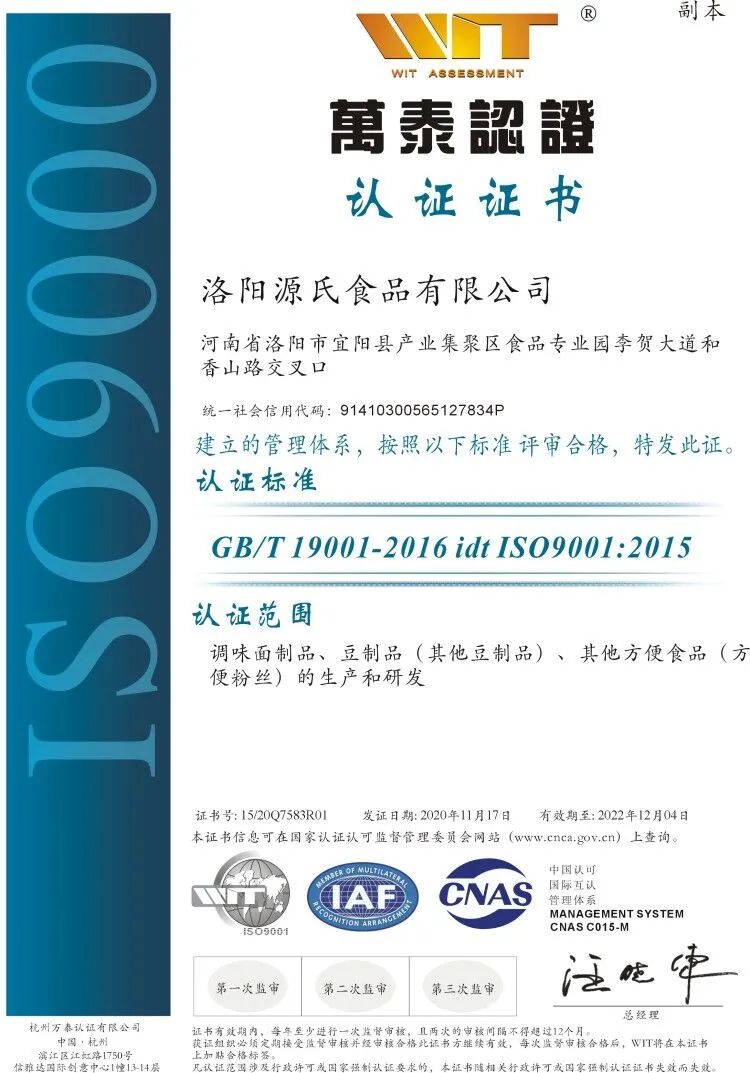 为了认真贯彻落实食品安全法,切实保障消费者的食品安全,我司认真开展食品质量管理控制工作。迄今为止,已取得ISO9000质量管理体系认证,ISO22000食品安全管理体系认证,HACCP危害分析与关键控制点管理体系认证(业内称之为“控制食品安全和风味品质的***好***有效的管理体系”)。